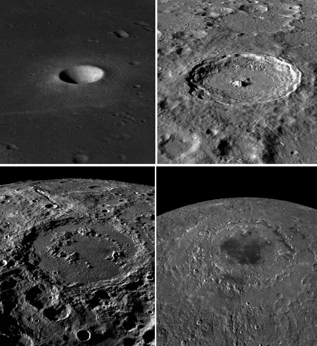 Fig 14 Top left: Moltke. A 6 km 'simple' crater with rim 300m higher than the flat mare in which the crater formed